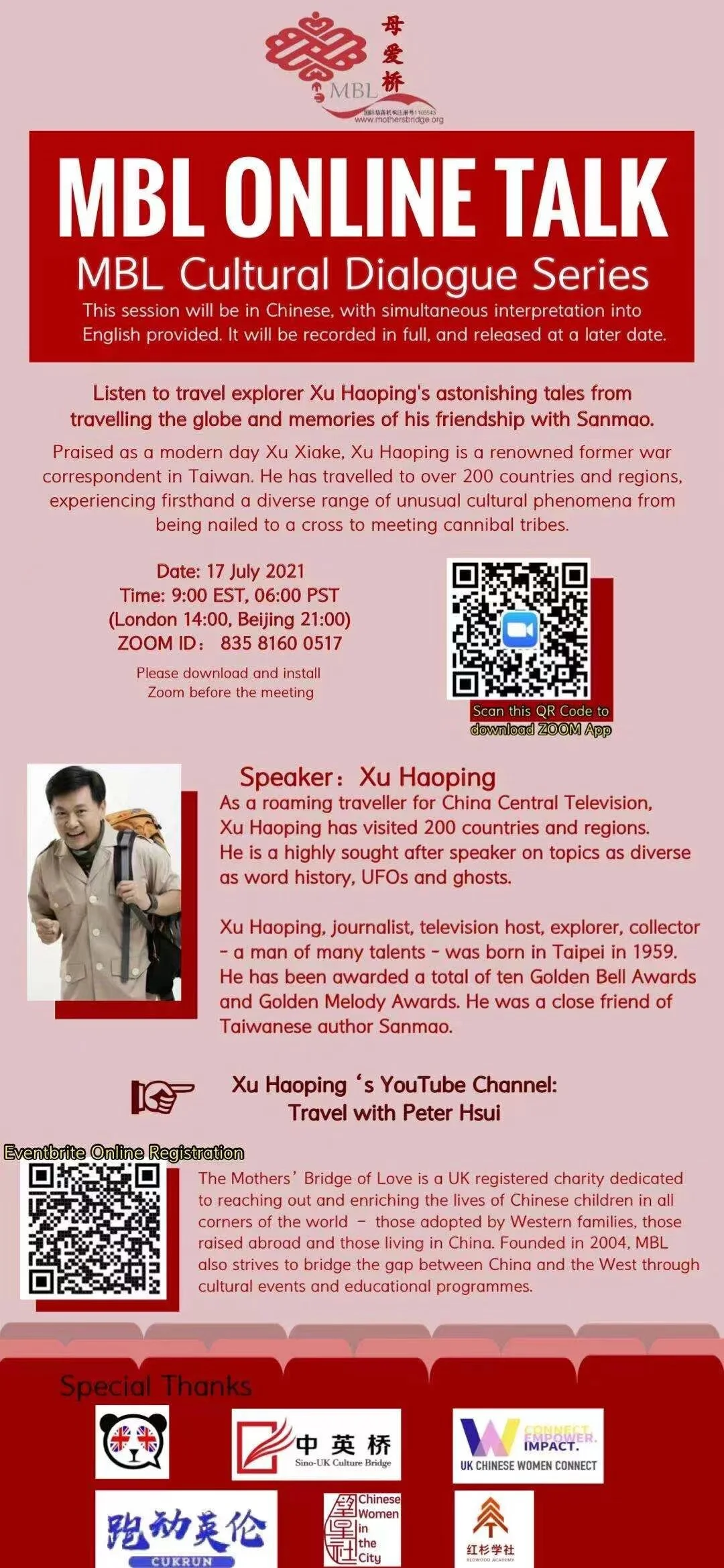 Please join us in our conversation with Xu Haoping, a celebrated author, television host, collector and an explorer, who has visited 200 countries and regions. He has been awarded ten Golden Bell Awards and Golden Melody Awards. He was a close friend of the late Taiwanese writer, Sanmao.